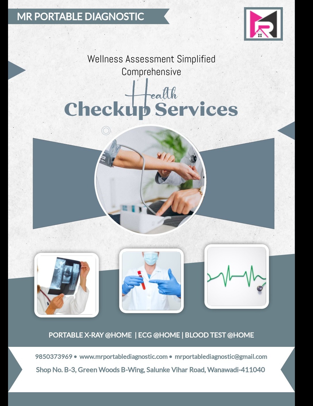 MR Portable Diagnostic Centre one of the best quality care at your doorstep, Skip the travel. Skip the wait. Get the medical diagnostics you need in the comfort of your home. At X-Ray Healthcare Services, we bring professional, hospital-grade diagnostics directly to you. From digital X-rays and ECGs to blood and urine testing, our experienced medical team ensures accurate, fast, and reliable results all without the hassle of visiting a clinic or hospital. Book your at-home appointment today and experience quality care on your schedule.