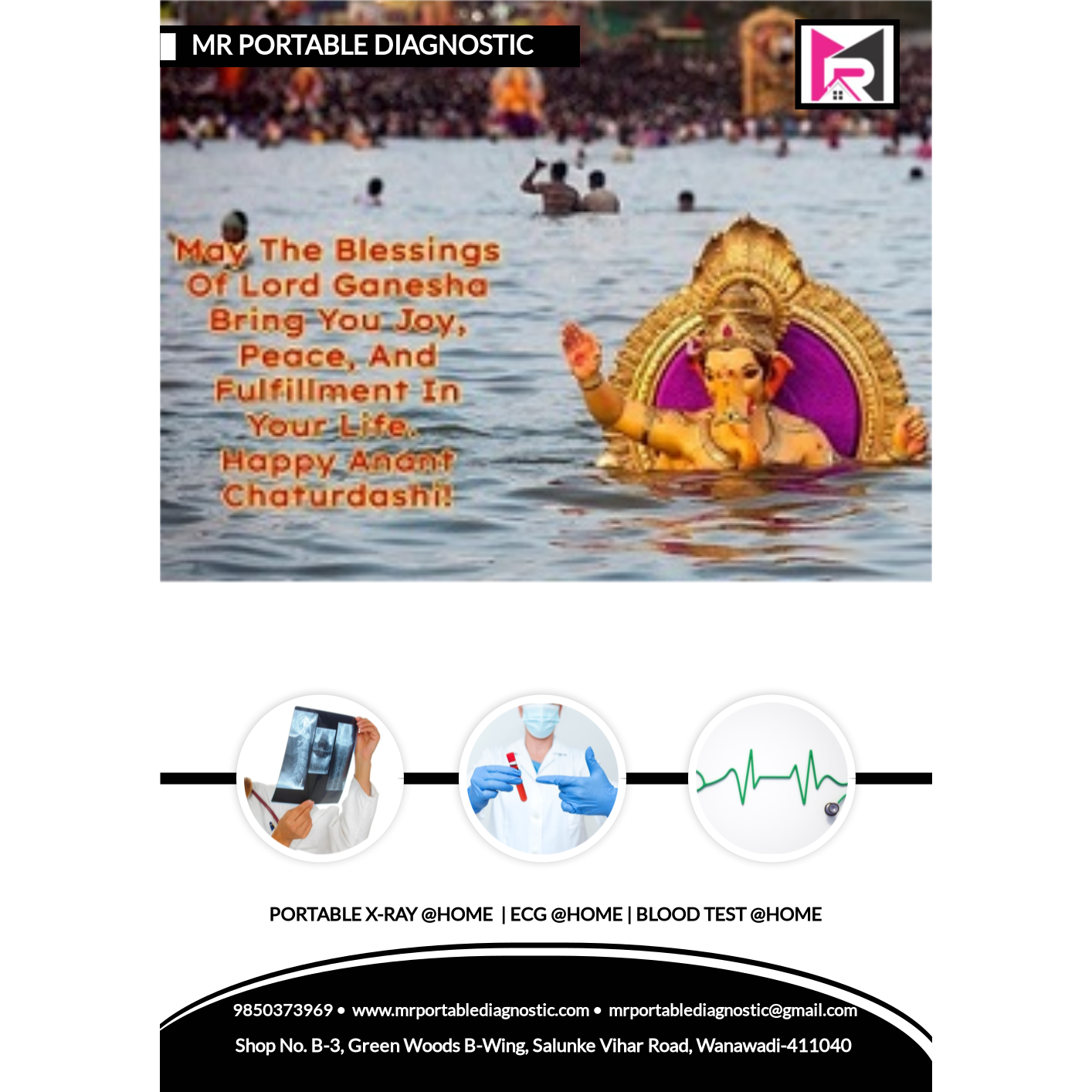 “On this Anant Chaturdashi, as we bid farewell to Lord Ganesha with devotion, let us remember that every ending is a new beginning. MR Portable Diagnostic Centre wishes you strength, good health, and joyful days ahead. May Lord Ganesha continue to bless your home with love, prosperity, and care.”